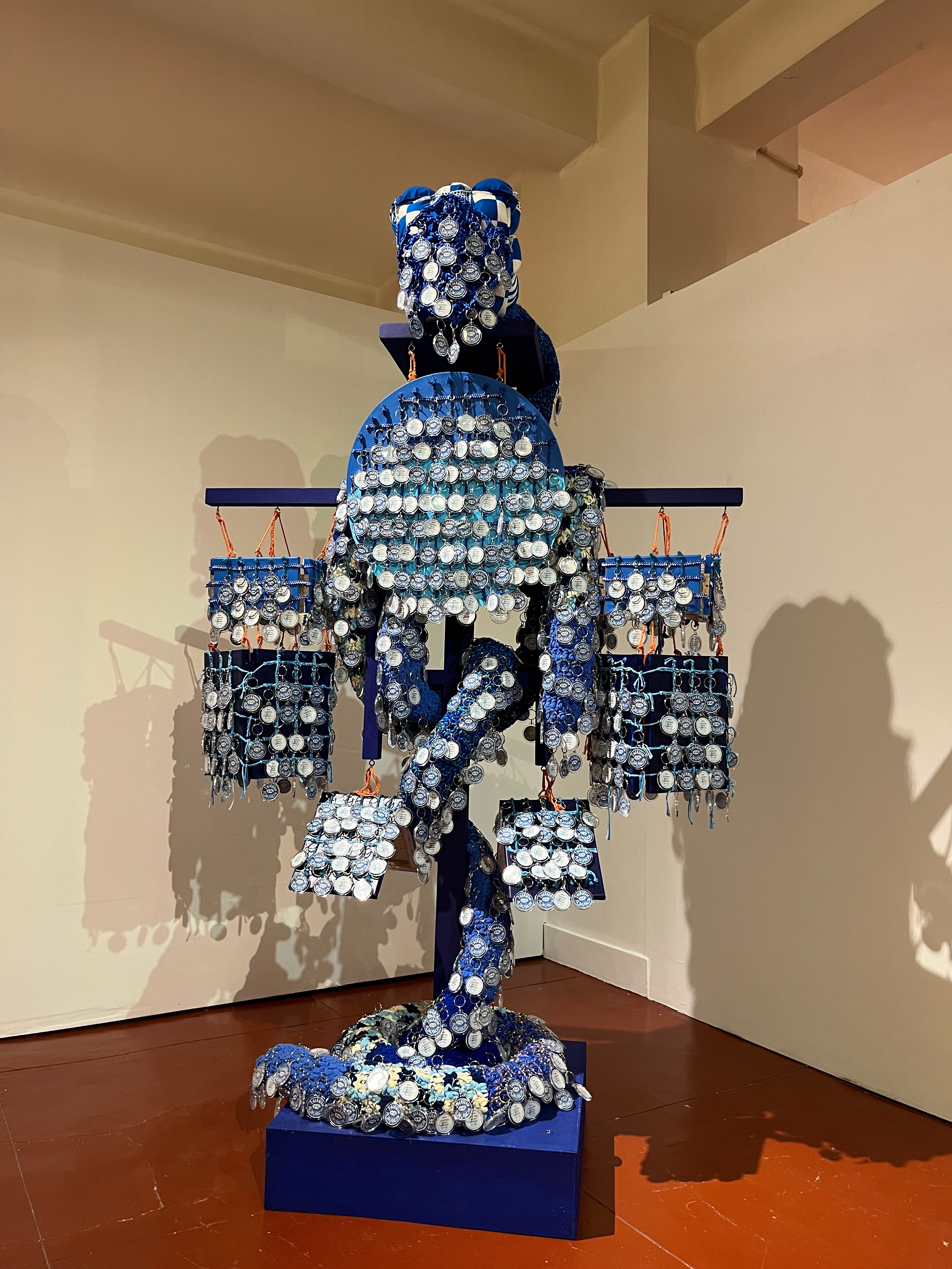 Memory, History, and Identity threads through several practices. Joshua Serafin’s Cosmological Gangbang enacts precolonial, gender-diverse mythologies, reclaiming bodies and histories that the empire sought to erase. Russ Ligtas’ The Last Hapi layers diaspora, ritual, and historical trauma, inviting quiet reflection on what remains and what vanishes. Henrielle Baltazar Pagkaliwangan collects everyday objects into archives that resist closure, unsettle colonial taxonomies while tracing the porous lines of memory. Tekla Tamoria’s tapestry, What a Journey It Has Been, folds personal and collective journeys into stitched fragments of urban life, family, and faith, merging the intimate with the communal.