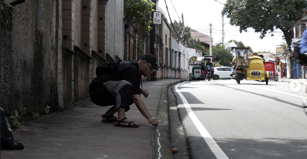 Vien Valencia’s Long Drawing begins with a simple act: chalk and/or crayon pressed to the ground, feet moving forward, a line left behind. Yet this mark is more than a drawing—it is a record of displacement.